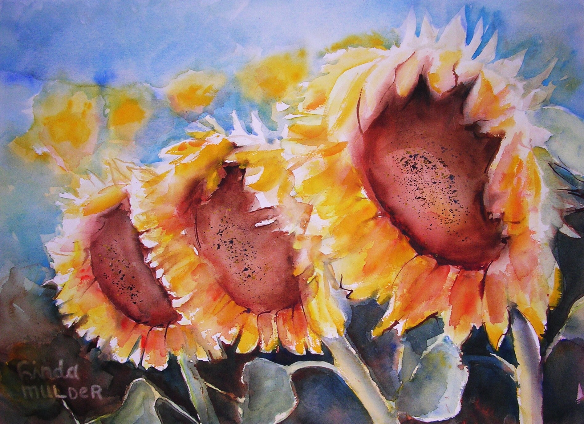 Linda Mulder, geboren in 1955, heeft een loopbaan achter de rug in zowel de luchtvaart als de administratie. Deze diverse achtergrond heeft haar gevormd, maar haar ware passie ligt in de kunst. Als kunstenaar is zij gespecialiseerd in het creëren van prachtige aquarellen, vaak met de toevoeging van gemengde technieken, wat haar werk een uniek karakter geeft.