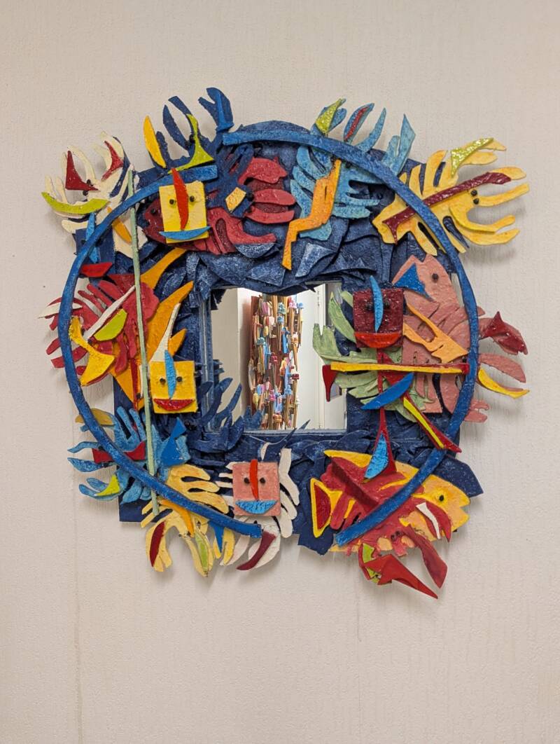Robert van Rossem-Polak maakt werken bestaande uit houten spiegellijsten met spiegel. De lijsten worden opgebouwd uit verschillende vormen, verschillende groottes en in verschillende kleuren.