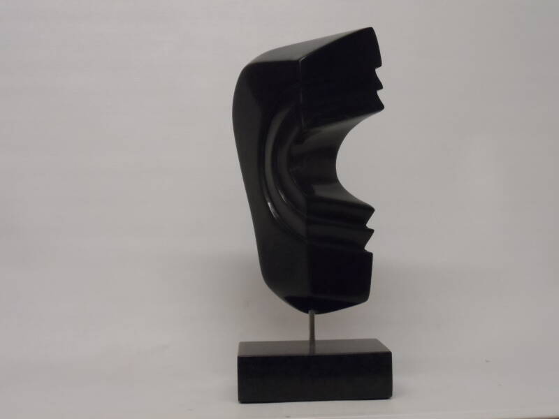 Zijn beelden zijn abstract van vorm, waarbij hij zich laat leiden door de vorm van de steen en de steen laat spreken.