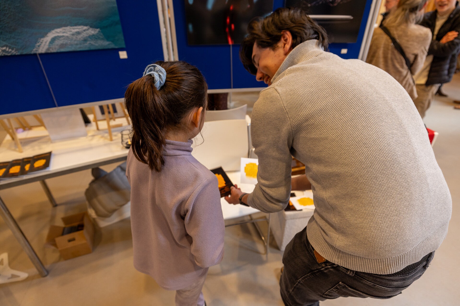 Op de eerste verdieping konden bezoekers bovendien zelf aan de slag in diverse gratis open ateliers. Van keramiek (begeleid door Lonny van Rijn) en recyclekunst (vaasjes maken van oude boeken, begeleid door Diana Groter) tot gelliplate-technieken (begeleid door Jetske Visser) en portrettekenen (Margit Klumpers (Epictalesart), docente kunstvakken) – er was voor ieder wat wils.